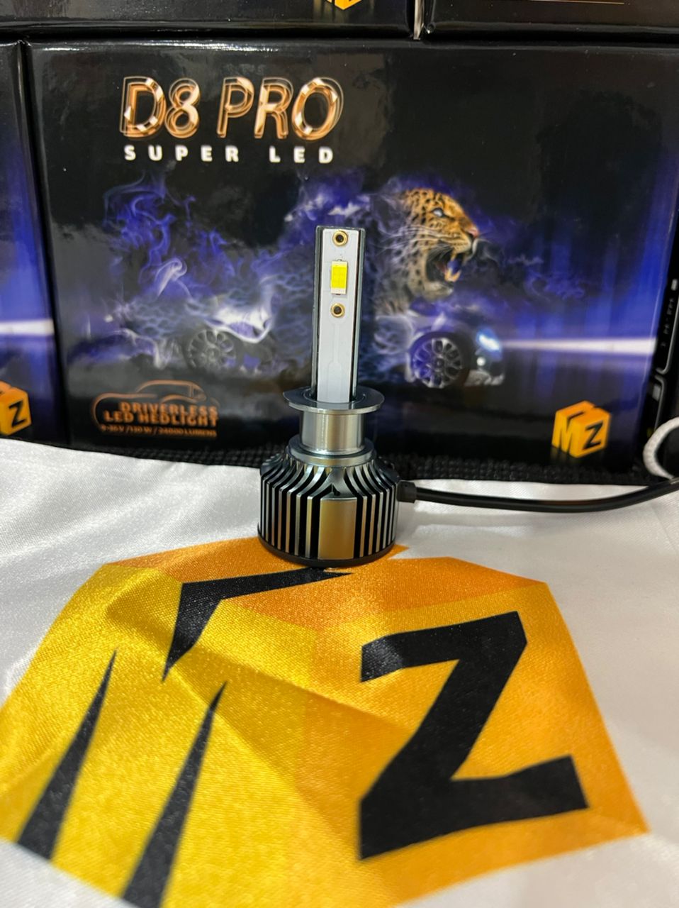 هدلایت d8 pro چیپ آن از نوع CSP 3570 است و توان مصرفی آن نیز 130w و طول عمر آن 50 هزار ساعت میباشد. میزان نوردهی این هدلایت 24000 لومن می باشد و در پایه های مختلف موجود است.