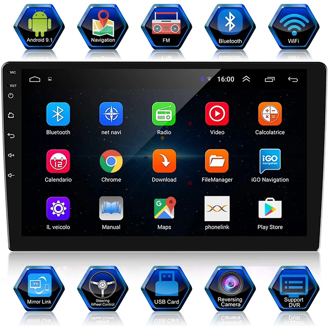 مانیتور اندروید Android 9.1+Bluetooth+RDS/FM Radio+GPS Navigation ANKEWAY 2020 New Car Internet Multimedia Platform (1G RAM/16G ROM/12V/2 DIN) که به شما امکان می دهد از هر برنامه کاربردی مانند Google Maps، YouTube، TikTok، Spotify و غیره استفاده کنید. داده های ناوبری GPS اروپایی، 18 ایستگاه FM {...}
